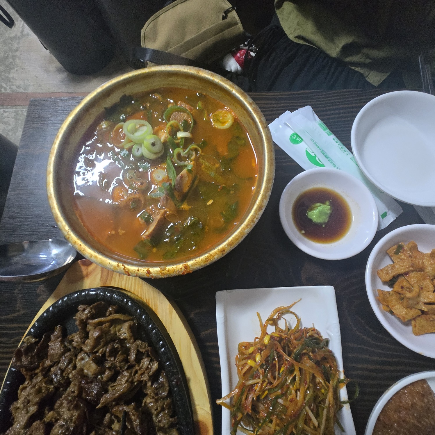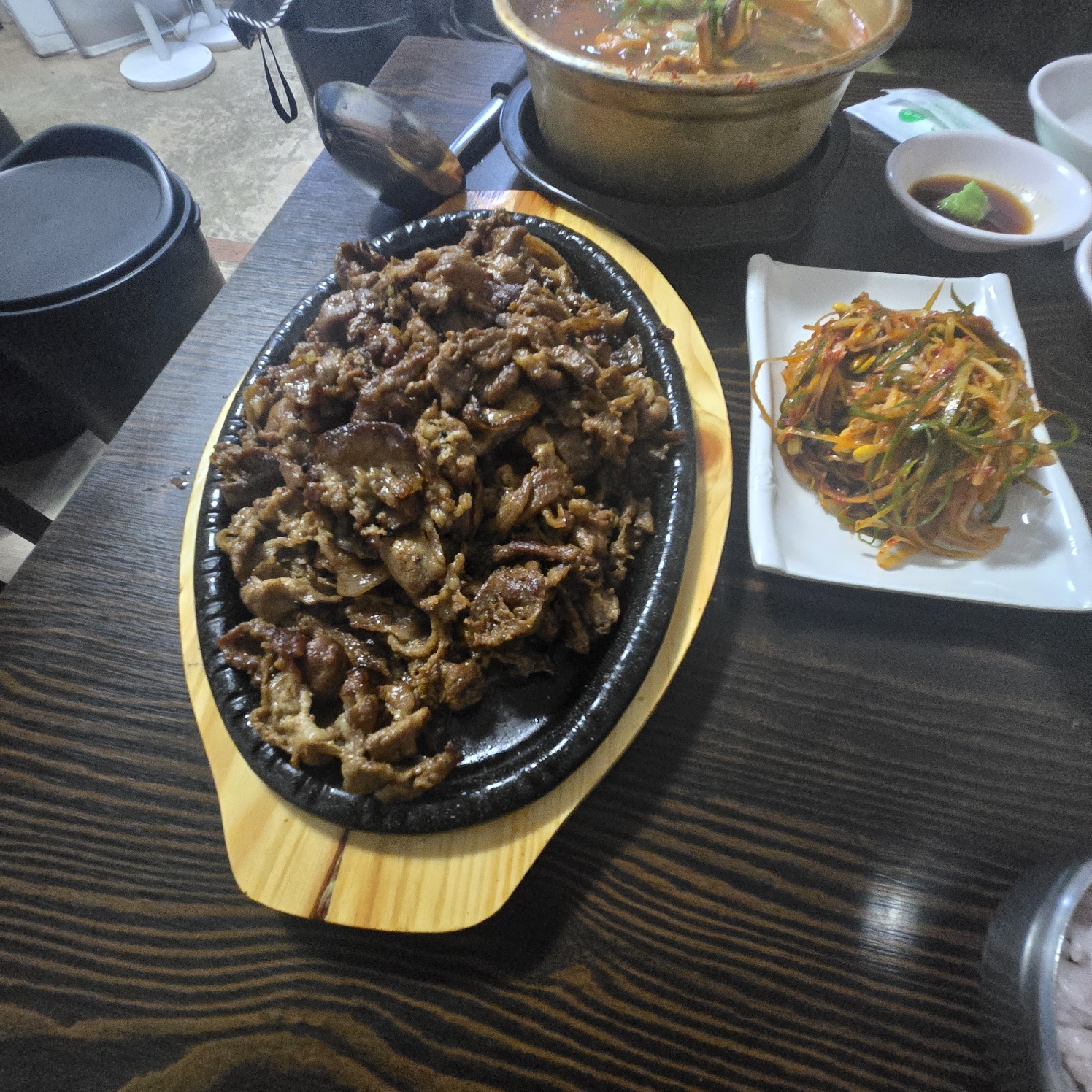 우리는 숯불 돼지 불고기 2인분과 양푼이 감자탕을 시켰다