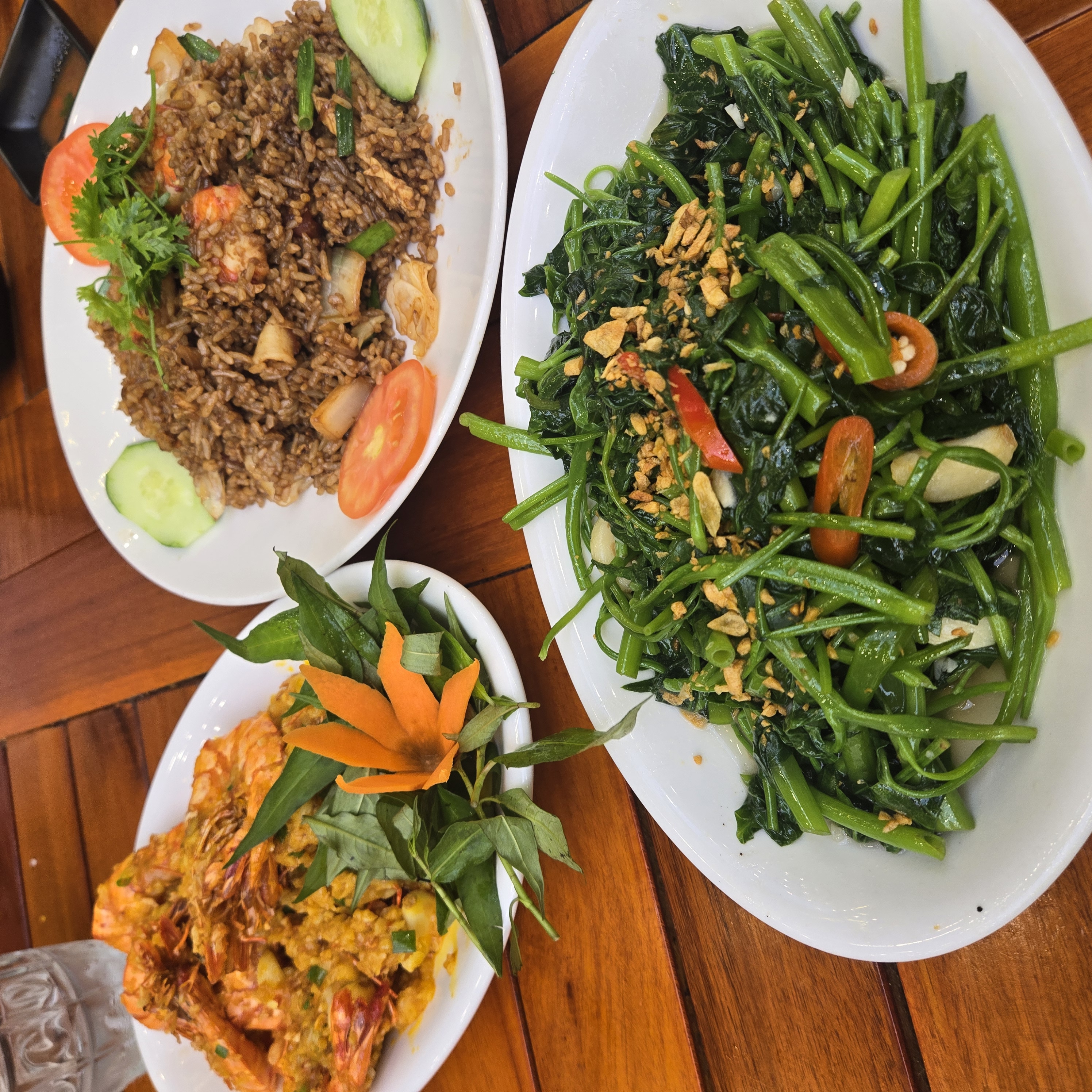 주문은 제가 전적으로 맡아서 했고 전부 다 맛있었는데 특히. 모닝글로리랑 볶음밥이